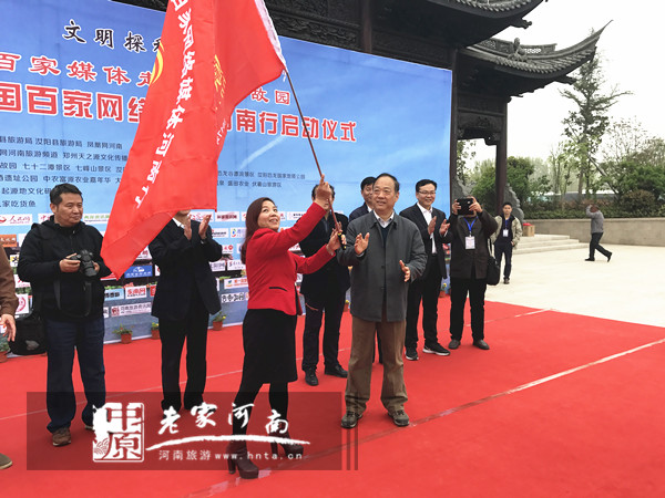 最后,河南省委宣傳部原副部長、河南省新聞攝影學會主席常法武宣布“文明探秘中華源”2917全國百家網(wǎng)絡媒體河南行活動啟動并授旗。