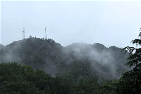 下著雨的雞冠洞,一切都是那么清新,樹(shù)枝上掛著一串串的雨滴,搖搖欲墜,小黃花在雨水的沖擊下,更加鮮艷奪目,云霧繚繞下的山脈,變幻莫測(cè)。