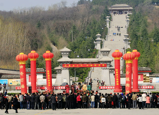 2012年04月02日清明“小假期”第一天,芒碭山漢文化景區(qū)東門(mén)二道門(mén)闕拉起的“漢源沐王氣 芒碭露清明”條幅顯得格外醒目。雖然天公不作美,卻擋不住前來(lái)觀光的游客的心情。 上午10點(diǎn)鐘左右,景區(qū)內(nèi)游客如織,大到三五十人組成的團(tuán)隊(duì),小到三五成群的“親友團(tuán)”,或欣賞芒碭山深邃、厚重的漢文化,或親身體驗(yàn) “創(chuàng)意畫(huà)蛋、雕蛋”藝術(shù)活動(dòng);小朋友們則被“千年地宮尋寶趣味競(jìng)賽活動(dòng)”及推鐵環(huán)、射箭、投壺等精彩的漢代游戲所深深的吸引。不光如此,許多老年人也興高采烈的加入到游戲體驗(yàn)中去,推鐵環(huán)、投壺,玩得的是不亦樂(lè)乎。
