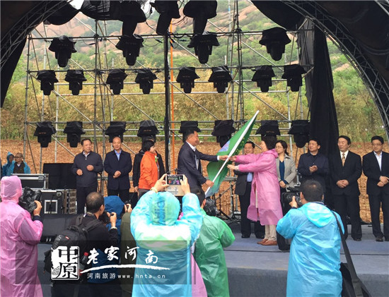 隨后,由駐馬店市旅游局局長高峰先生和中國旅游報社社長助理吳曉梅女士為采風(fēng)團(tuán)代表授旗。