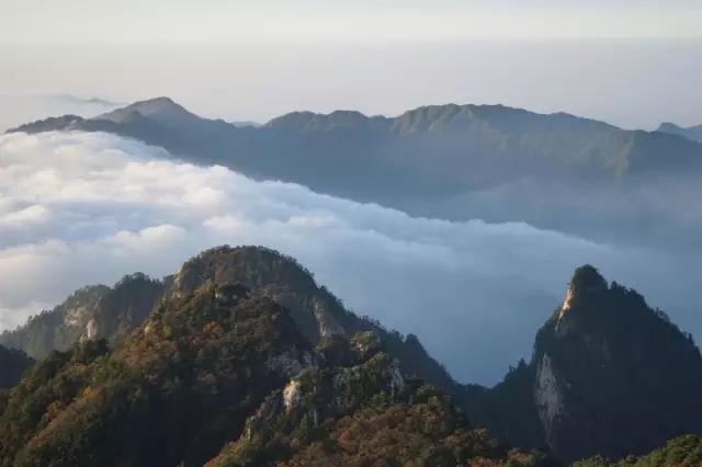 迎著黎明的曙光,踏著蜿蜒的步道,攀上中原海拔最高的山峰玉皇頂,晨曦中千山萬(wàn)壑就是一幅醉人的山水畫。無(wú)邊山峰與波濤云海撞擊出不絕于耳的濤聲,綿綿青山、重巒疊嶂、莽莽蒼蒼、江山入畫!