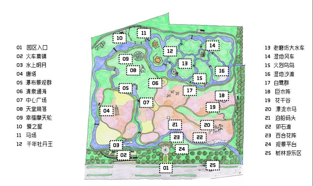 千畝牡丹園七大組成:入口幻彩區(qū)、火車(chē)集鎮(zhèn)區(qū)、牡丹花海區(qū)、浪漫百草區(qū)、休閑綠地區(qū)、濕地花境區(qū)、叢林游樂(lè)區(qū)。