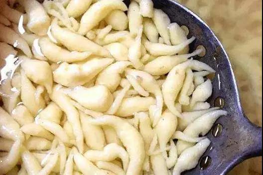 蛤蟆魚是一道著名的西峽傳統(tǒng)小吃西峽人土話叫“蛤蟆骨斗”,意即小蝌蚪的意思,其實這個叫法十分形象,也十分貼切,因為做出來的面十分像小蝌蚪。