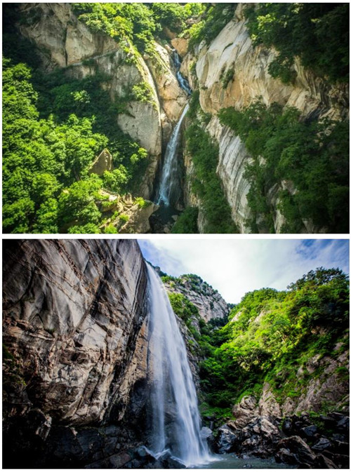 群山環(huán)繞,林海如煙,山中的春景一片欣欣向榮,冰雪早已消融,瀑布飛流而下似銀河。