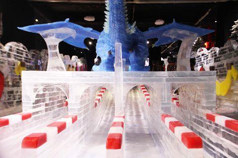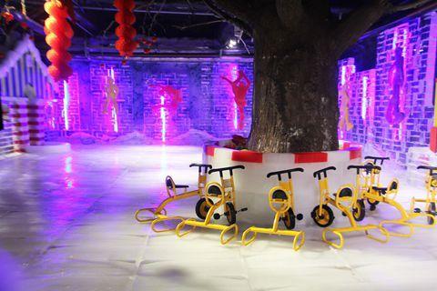 想來點刺激的?那還不趕快站上玻璃臺向下看,不用VR,平地也能讓你體驗到如履薄冰.步步驚心的“萬丈深淵”,游園從這里開始才夠嗨!還有去年的超人氣項目得以保留,比如人形冰墻,海賊船彎道冰滑梯,桌上冰壺球,冰壺保齡球,龍口穿越等精彩等你來。