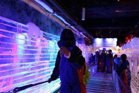在玄冰洞,有傾瀉而下的冰掛瀑布,如夢如幻;有琥珀般封印在雕梁畫棟里的畫中景,躍然眼前,再加上五彩繽紛的光影交錯,將冰的極致之美完美展現(xiàn),置身其中,仿佛下一秒就將穿越到世外桃源。