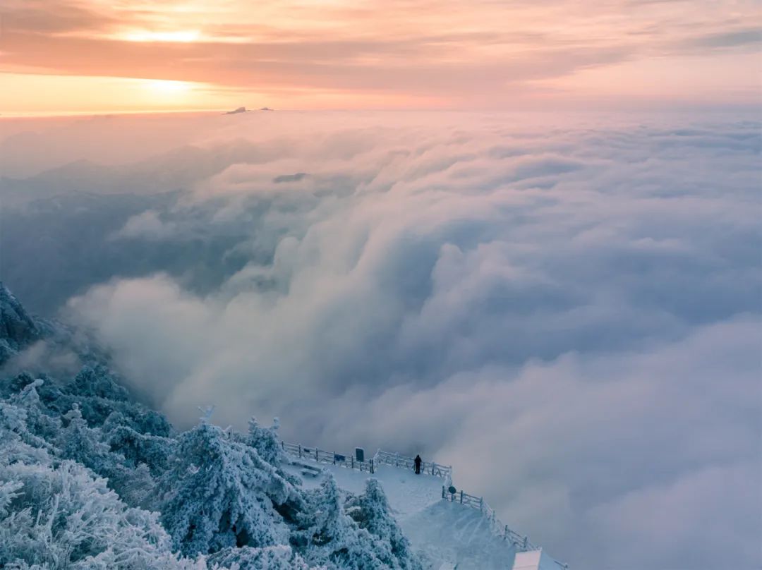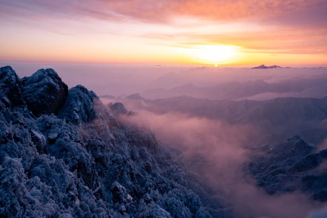 在同一天內(nèi),春雪、霧凇、云海、落日、晚霞齊上線,美不勝收,讓人流連忘返。