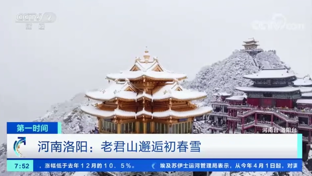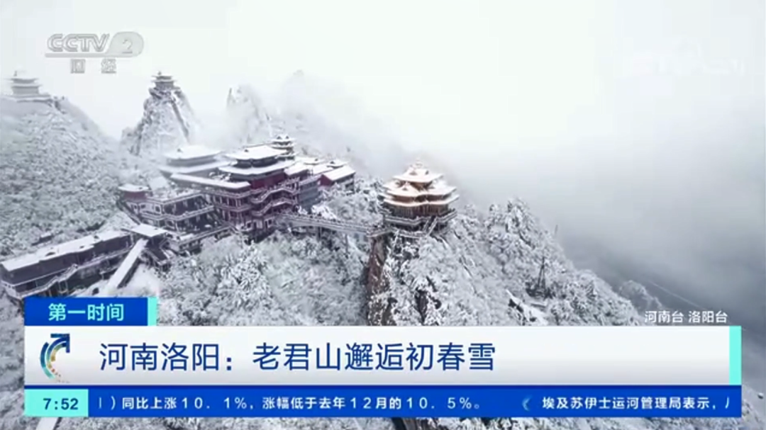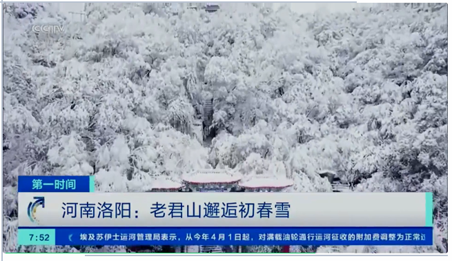 2月15日07:50,CCTV-2 財(cái)經(jīng)頻道[第一時(shí)間]播出新聞:【河南洛陽(yáng):老君山邂逅春雪】,將目光聚焦老君山雪景。