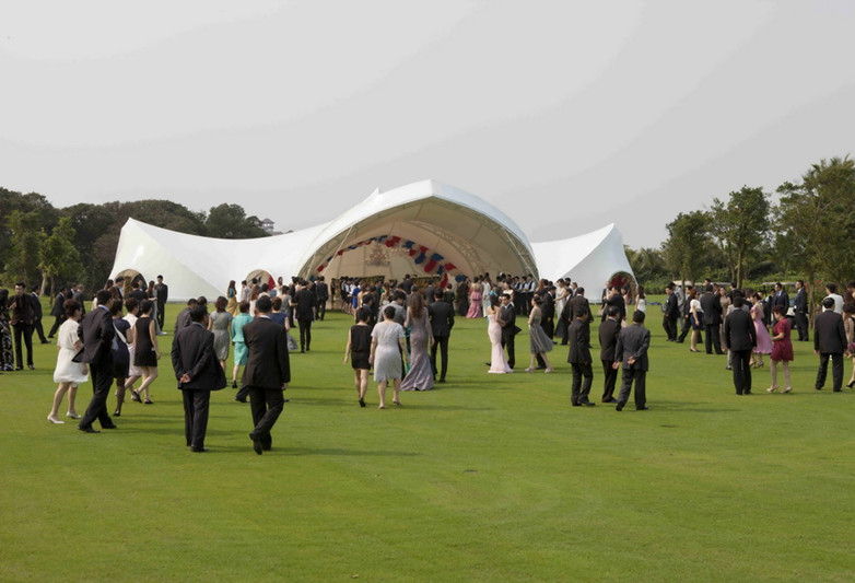 《私人訂制》里有一處豪華的室內(nèi)電影場景,就是在?谟^瀾湖別墅里拍的。進(jìn)入此座別墅舉目盡覽1號黑石球場美景和醉人的熱帶風(fēng)光。在椰風(fēng)習(xí)習(xí)、陽光明媚的?谟^瀾湖黑石球場上,猶如歌劇院造型的白色帳篷,點(diǎn)綴在萬頃碧野。據(jù)觀瀾湖方面工作人員介紹,這是馮小剛開拍《私人訂制》時 留下的電影道具——“成人帳篷禮”,現(xiàn)已成為新人拍攝婚紗、舉辦婚禮的地方。