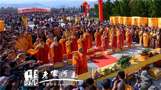 2015年10月13日上午,中原大佛景區(qū)祥云普照,梵音悠揚,人天歡喜。在喜慶吉祥的佛樂聲中,中原大佛迎來了開光7周年慶典,一時間鐘鼓齊鳴,升騰的禮花綻放在中原大佛景區(qū)上空,大眾歡喜,人天共慶。來自各地的高僧大德、宗門領(lǐng)袖、佛教居士,同愿同行,共赴盛會,同沐佛恩。