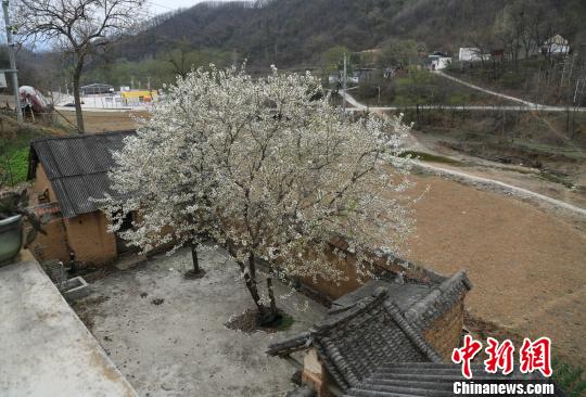 資料圖:深山里的桑盤村小院落一樹春花!《w 攝
