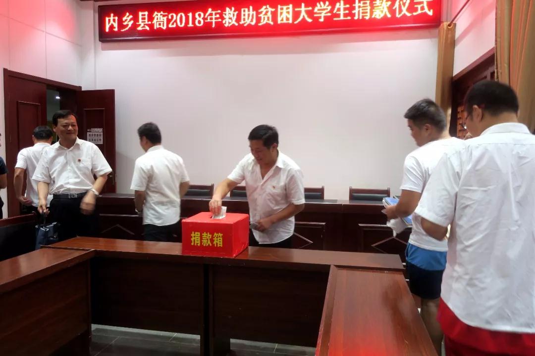 7月16日,內鄉(xiāng)縣衙舉行2018年救助貧困大學生捐款儀式,廣大黨員干部踴躍為貧困學生圓夢大學奉獻一份愛心。