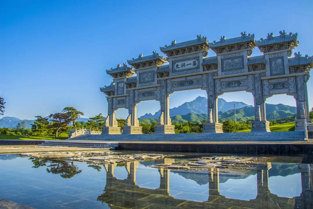 高聳入云雕刻著創(chuàng)世神話的五門六柱十一樓道境廣場(chǎng)石雕牌坊,映照著遠(yuǎn)處王者之屋的層巒疊嶂,一眼望不盡的宏偉壯麗,在王屋山間盡顯。