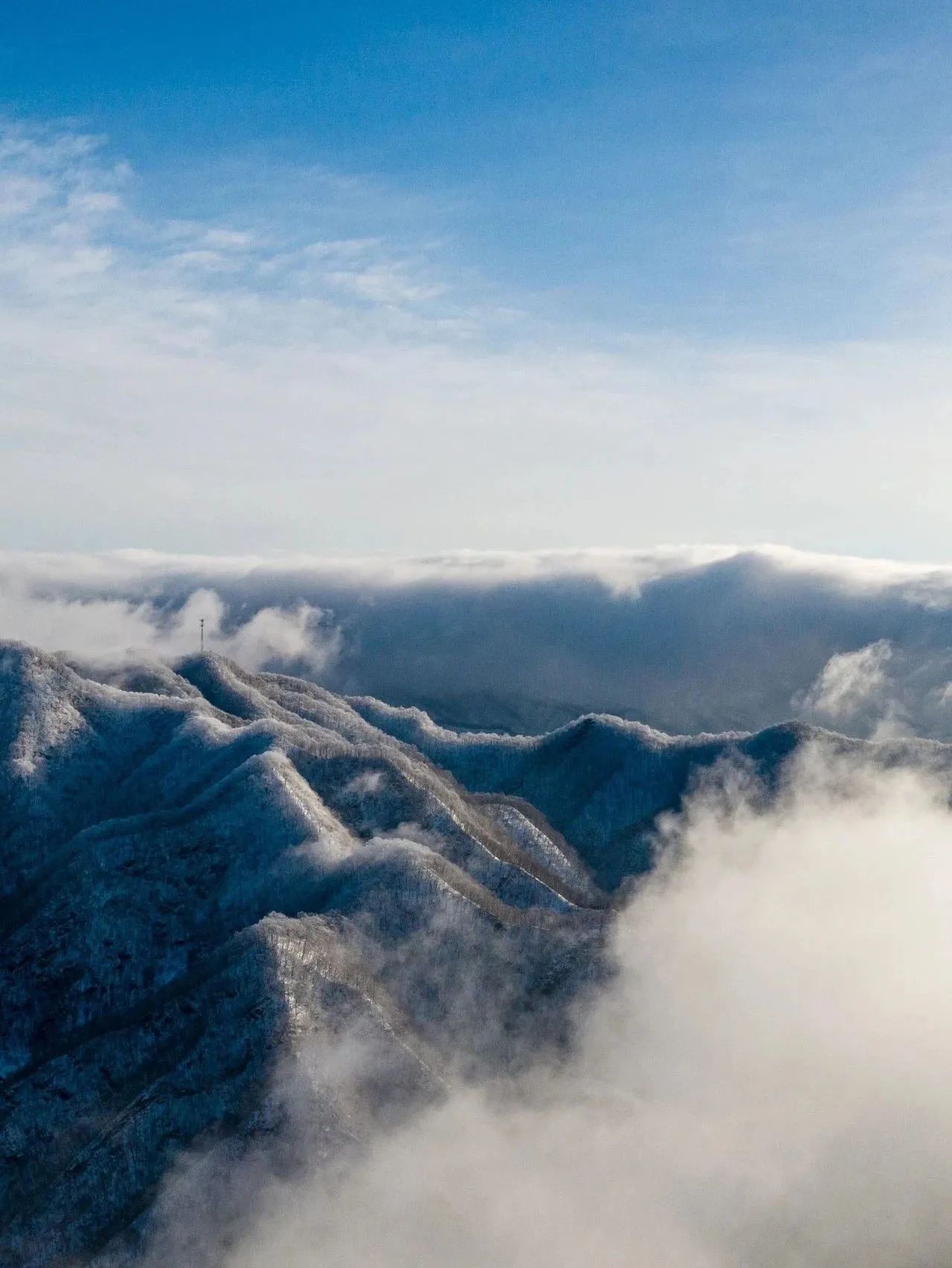 冬日雪后的霧凇、冰掛再次上線,茫茫雪色淹沒重巒疊嶂,云海飄渺,雪山壯闊 。