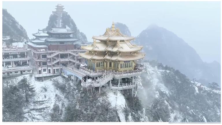 而雪后陰天的老君山因為光線原因,看到和拍攝后的畫面,顏色往往偏冷偏灰白,古風(fēng)、建筑在這樣的天氣下最有意境,天色和建筑環(huán)境同一色調(diào),畫面就會協(xié)調(diào),韻味就出來了。