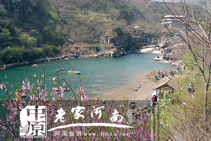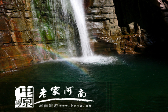 說起八里溝景區(qū),自然要說八里溝的水,這里擁有華北第一瀑——天河瀑布。瀑布落差180多米,氣勢雄渾,巨大的水流沿山勢而下,在抱犢橋前面聚集形成了桃花灣,潭水最深處有7到8米,總面積超過2平方公里,是南太行中最大的潭水之地。春季桃花環(huán)抱,夏季碧波蕩漾,秋季山果飄香,冬季靜怡端莊。一年四季,景景不同,美不勝收。