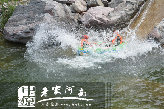 “勇士漂流段”浪花飛濺,漂流船視同飛劍,可以體驗(yàn)漂流的驚險(xiǎn)和刺激。