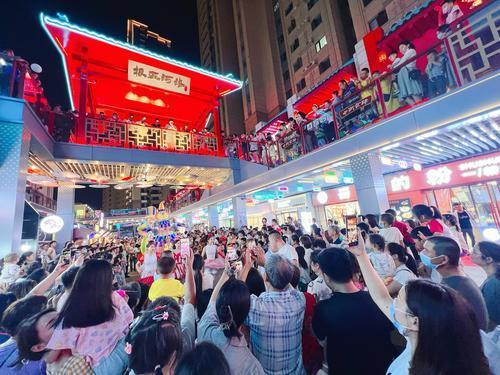 隨著夜幕降臨、霓虹亮起,與吉安北街離得不遠(yuǎn)的廣州市場步行街,也變得熱鬧非凡。悅耳的音樂、精彩的表演、美味的小吃……廣州市場步行街融合夜購、夜食、夜娛、夜秀等業(yè)態(tài)模式,漫步街區(qū)中,還有唱歌、舞蹈以及各種有趣的藝術(shù)表演吸引著游客。此外,各類游戲攤位頗受年輕人和小朋友的喜歡,增添了夜市的互動(dòng)性和娛樂性。