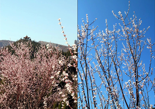 不待春風(fēng)遍,煙林獨早開,淺紅欺醉粉,肯信有將梅,對云夢山而言,春是花和雨的交替,最先知春的是杏樹,還沒來得及長出葉子,枝條上已是玉枝凝香,綻瓣吐蕊,點點粉白間跳出耀眼的緋紅,綻開的花蕊點燃了春。