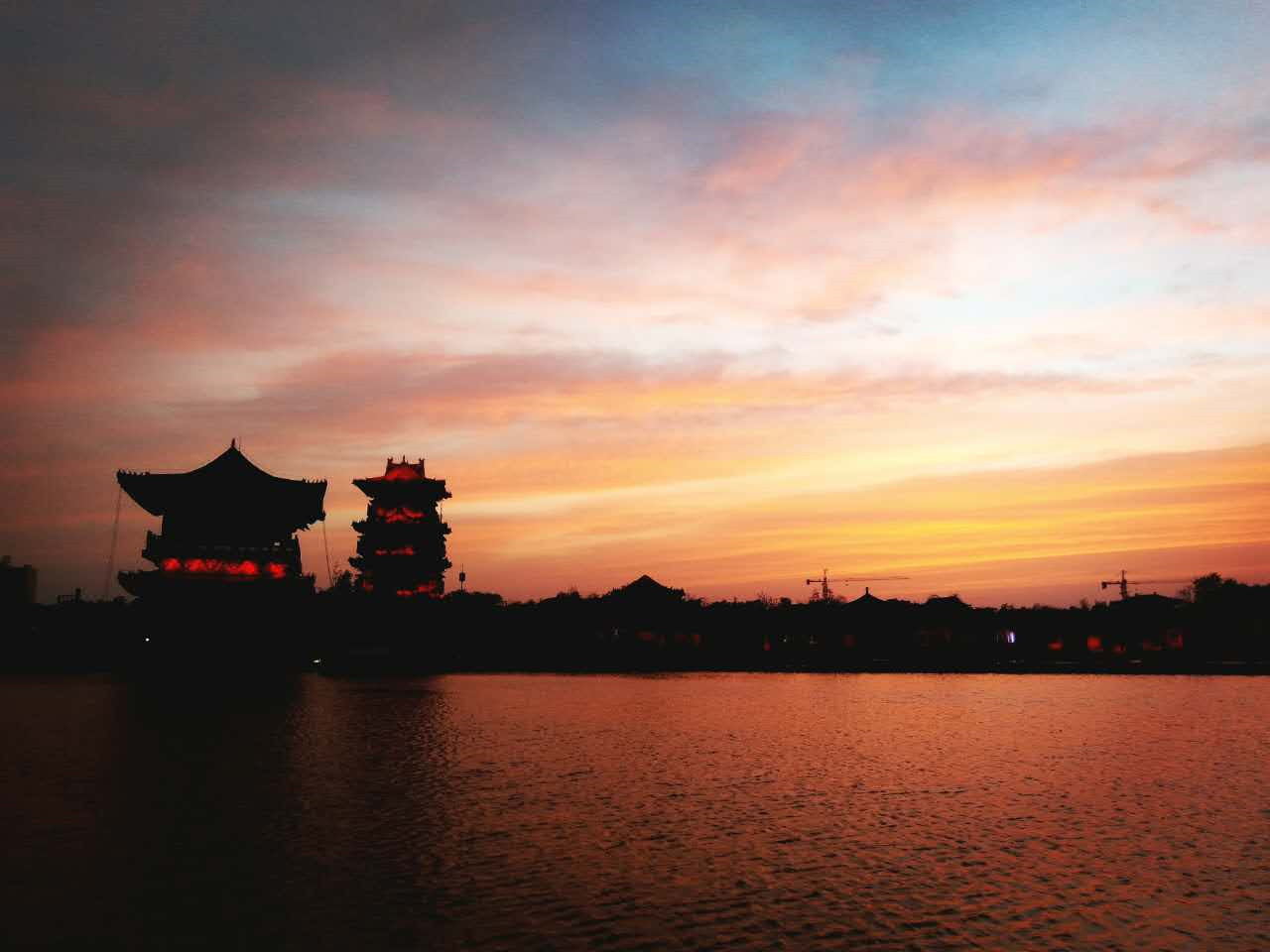 沐浴過清明上河園的朝霞晚風(fēng),躲過夜雨的悄然叮咚,經(jīng)過汴河的暗流涌動……但今晚的晚霞凌空,火燒云朵朵玲瓏,哽咽,從容,那是從未有過的心動,紅霞映照的清明上河園讓你心醉了么!