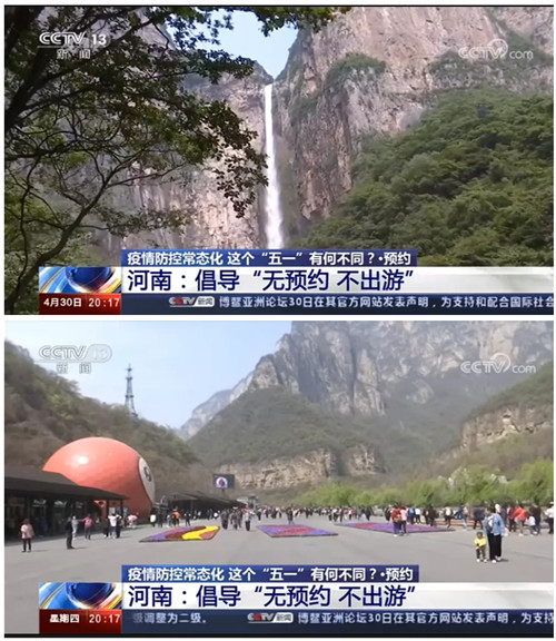 4月30日晚,央視新聞?lì)l道《東方時(shí)空》報(bào)道云臺(tái)山景區(qū)“倡導(dǎo)預(yù)約出行 保障游客安全”。
