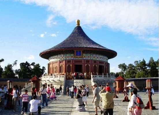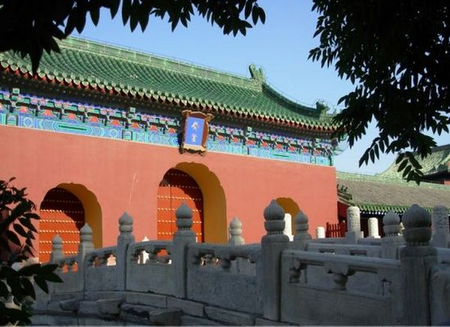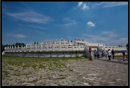 在北京崇文區(qū),故宮東南方數(shù)公里處,有一座占地273公頃的祭天神廟,這就是天壇。它比故宮還要大4倍,是明、清朝兩代帝王冬至日時祭皇天上帝和正月上辛日行祈谷禮的地方。