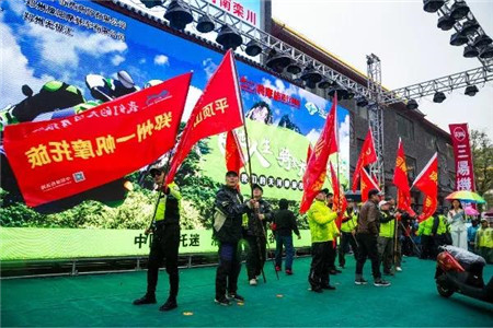 中國摩迷網(wǎng)向參加活動的摩迷俱樂部授旗,現(xiàn)場紅旗招展,人山人海。