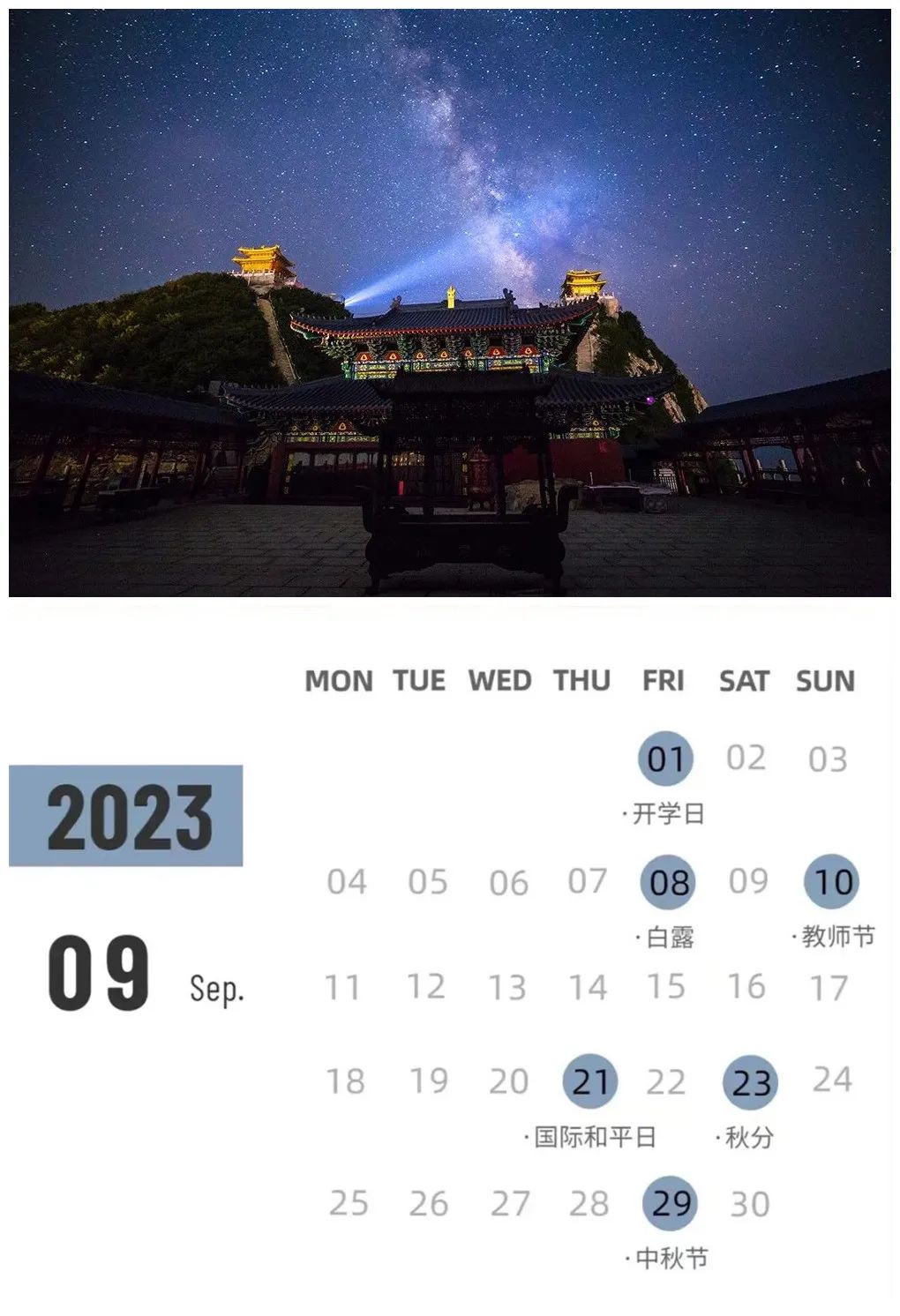 九月,天朗氣清,登上金頂看老君山繁星閃爍,感受星垂平野闊的詩(shī)意。