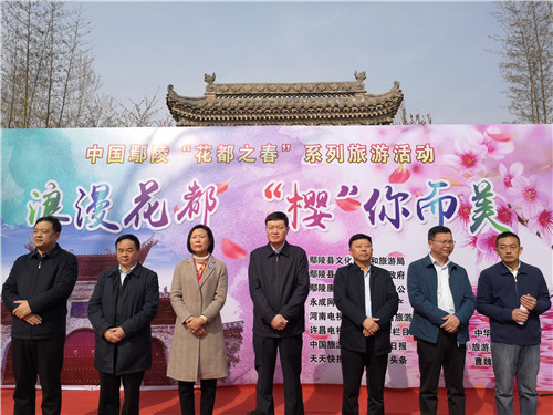 2019年3月23日上午十點(diǎn)整,“花都之春”系列旅游活動暨中國·鄢陵第三屆唐韻櫻花節(jié)在唐韻園林隆重開幕!本屆櫻花節(jié)由鄢陵縣文化廣電和旅游局與鄢陵縣陳化店鎮(zhèn)人民政府主辦,鄢陵唐韻生態(tài)旅游有限公司承辦,主題為“浪漫花都,櫻你而美”;井a(chǎn)業(yè)集聚區(qū)黨工委書記、管委會主任閻宏偉、許昌市文化廣電和旅游局副局長吳驗(yàn)兵、鄢陵縣政府副縣長靳喜民、鄢陵縣政府副縣長張永祥、縣政府辦公室副主任張中衛(wèi)、鄢陵縣文化廣電和旅游局局長王春彪、唐韻生態(tài)旅游有限公司負(fù)責(zé)人鄭紅偉參加了櫻花節(jié)開幕式。