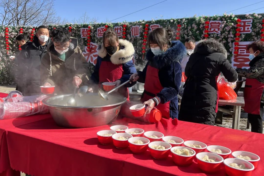 為了讓游客能夠感受到家的溫暖,感受到團(tuán)圓的氣氛,在景區(qū)中天門,一口大鍋煮起熱騰騰的餃子,供游客免費(fèi)品嘗。讓出門在外的游客們,也能嘗到家的味道。