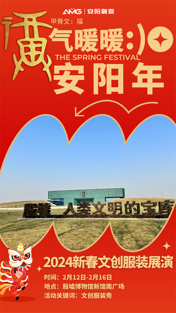 為了著力加強殷墟甲骨文保護傳承與活化利用,助力打造殷墟甲骨文中華文化新地標,2月12日至16日每天13時30分至14時10分,殷墟博物館將在殷墟博物館新館南廣場舉行新春時裝展演。