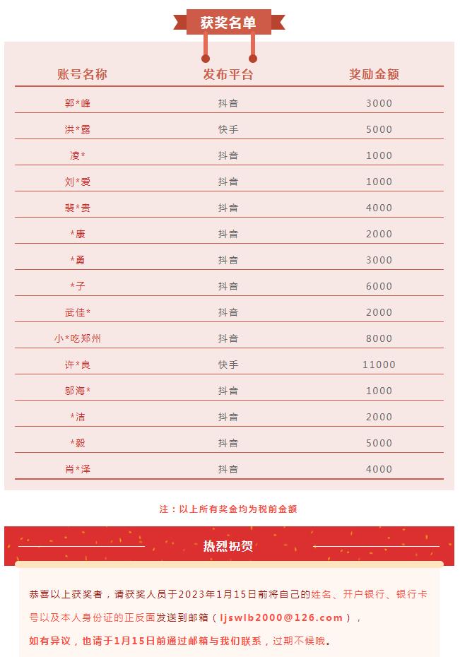 在此,君君代表老君山景區(qū)感謝你們的積極參與,經(jīng)過評審領(lǐng)導(dǎo)小組審核后,現(xiàn)獲獎名單公布如下: