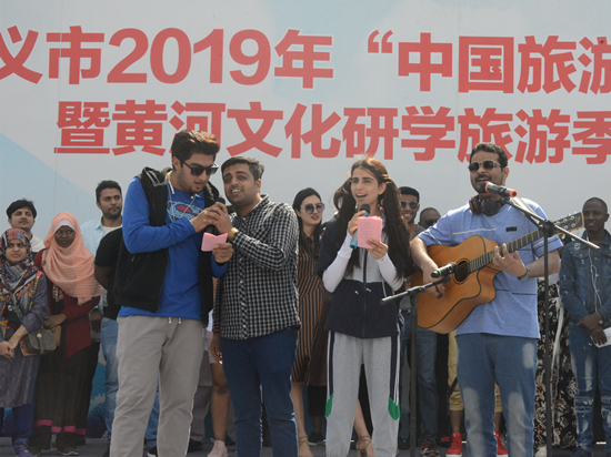 △百名外國游客與鞏義學(xué)生一起彈唱杜詩
