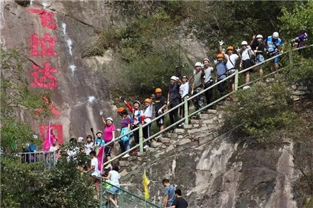 在山面上建設(shè)由鐵扶手橫梯、固定纜索、巖石塞、踏腳墊等構(gòu)成的爬山徑道,保留了野外攀巖的驚險(xiǎn)刺激,同時(shí)大大降低了對(duì)攀爬者的專(zhuān)業(yè)技術(shù)要求! 五道幢飛拉達(dá)攀巖,在充分保障安全的前提下,讓普通人也能馳騁懸崖,做巖壁上的舞者!身處懸崖峭壁,身后是“萬(wàn)丈懸崖”,讓我們克服畏懼、砥礪前行!征服懸崖,俯瞰大美風(fēng)景,獲得感官上的極大刺激和享受!挑戰(zhàn)飛拉達(dá),玩的不僅是心跳,還可以鍛煉身體,裨益身心!克服畏懼,挑戰(zhàn)自己,在每一次攀巖中得到升華,這就是飛拉達(dá)帶給我們的樂(lè)趣!