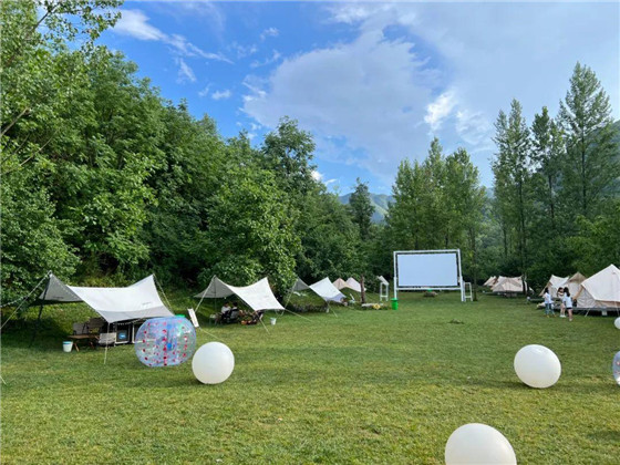 營(yíng)地內(nèi)設(shè)置游客服務(wù)中心、帳篷營(yíng)位、汽車營(yíng)地、山地自行車、燒烤篝火、露天電影等休閑娛樂(lè)設(shè)施及場(chǎng)地。營(yíng)地以“精致露營(yíng)”定位,區(qū)別于傳統(tǒng)露營(yíng),精致露營(yíng)更注重裝備審美和風(fēng)格,追求年輕化、個(gè)性化的體驗(yàn)。在裝備更趨輕奢化的基礎(chǔ)上,游客可以“拎包入住”。