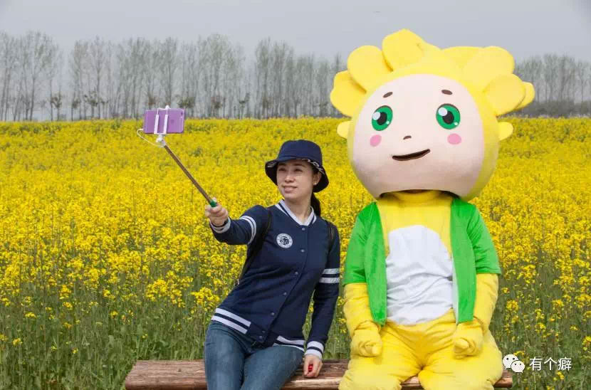 可愛的油菜花吉祥物寶寶吸引了許多游客合影