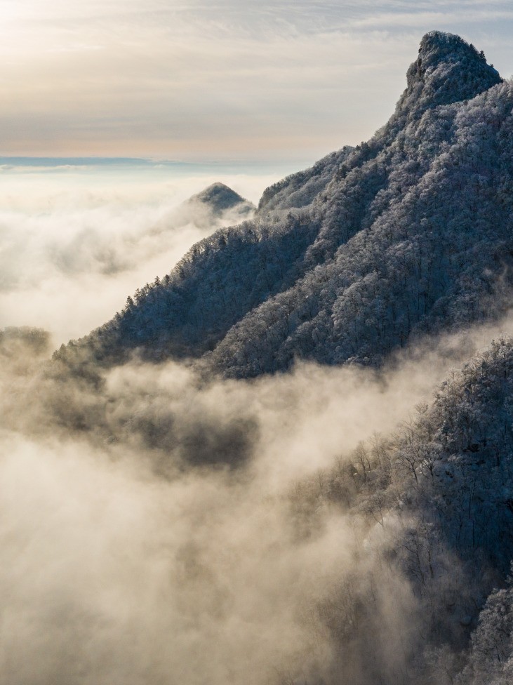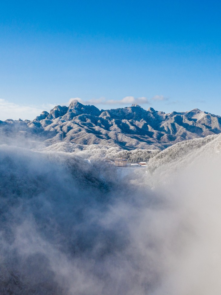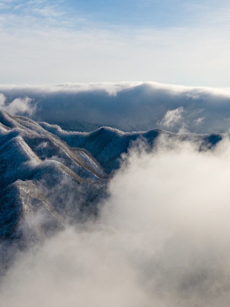 春雪過后的白云山,云海乍現(xiàn),云層隨風變幻,如驚濤駭浪或在山谷間涌動、上下飛騰,近處未化的積雪,遠處飄渺的云海,一步一景,壯美與浪漫并存。