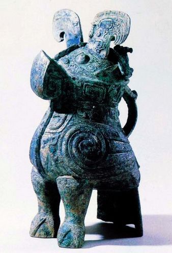 鸮,俗稱貓頭鷹;尊,酒器。用鳥的形象做成青銅禮器在當時非常盛行。貓頭鷹是食肉類猛禽,生活習(xí)性與大多數(shù)鳥類不同,晝伏夜出,在商人眼里充滿了神秘感,這種神秘感久而久之就轉(zhuǎn)化成一種神圣的宗教情感,成為商人頂禮膜拜的偶像,因而鸮的形象常常出現(xiàn)在禮器上。