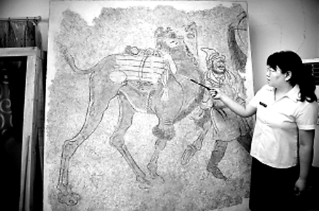 7月13日,洛陽(yáng)古代藝術(shù)博物館館長(zhǎng)王愛文告訴記者,該館工作人員近日在清理和保護(hù)洛陽(yáng)唐代安國(guó)相王李旦孺人唐氏壁畫墓時(shí),發(fā)現(xiàn)了兩幅駱駝馱絲綢壁畫。這一重大發(fā)現(xiàn)為洛陽(yáng)是絲綢之路起點(diǎn)的說法再添力證。