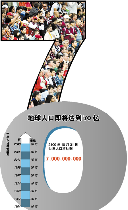 根據(jù)聯(lián)合國(guó)人口基金會(huì)(UNFPA)發(fā)布的最新報(bào)告,在2011年10月31日之前,地球總?cè)丝跀?shù)將隨時(shí)突破70億大關(guān)。第70億名地球居民很可能在亞太地區(qū)誕生。