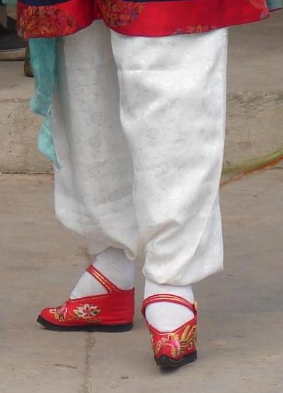 對(duì)此,有學(xué)者認(rèn)為,小腳之所以稱之為金蓮,應(yīng)該從佛教文化中的蓮花方面加以考察。蓮花出淤泥而不染,在佛門中被視為清凈高潔的象征。佛教傳入中國(guó)后,蓮花作為一種美好、高潔、珍貴、吉祥的象征也隨之傳入中國(guó),并為中國(guó)百姓所接受。在中國(guó)人的吉祥話語(yǔ)和吉祥圖案中,蓮花占有相當(dāng)?shù)牡匚灰舱f(shuō)明了這一點(diǎn)。故而以蓮花來(lái)稱婦女小腳當(dāng)屬一種美稱是無(wú)疑的。另外,在佛教藝術(shù)中,菩薩多是赤著腳站在蓮花上的,這可能也是把蓮花與女子小腳聯(lián)系起來(lái)的一個(gè)重要原因。為什么要在“蓮”前加一個(gè)“金”字呢,這又是出于中國(guó)人傳統(tǒng)的語(yǔ)言習(xí)慣。中國(guó)人喜歡以“金”修飾貴重或美好事物,如“金口”、“金睛”、“金鑾殿”等。在以小腳為貴的纏足時(shí)代,在“蓮”字旁加一“金”字而成為“金蓮”,當(dāng)也屬一種表示珍貴的美稱。因此,后來(lái)的小腳迷們往往又根據(jù)大小再來(lái)細(xì)分貴賤美丑,以三寸之內(nèi)者為金蓮,以四寸之內(nèi)者為銀蓮,以大于四寸者為鐵蓮。于是言及金蓮勢(shì)必三寸,即所謂三寸金蓮。后來(lái)金蓮也被用來(lái)泛指纏足鞋,金蓮成了小腳的代名詞。