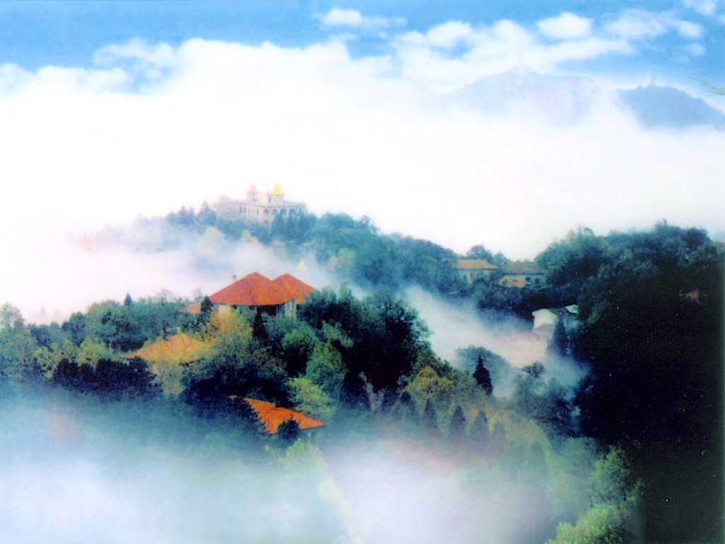 雞公山是全國四大避暑勝地之一,早在本世紀(jì)初就與北戴河、廬山、莫干山齊名。古人“ 三伏炎蒸人欲死,清涼到此頓疑仙”的詩句,就是雞公山清涼宜人的生動(dòng)描繪。雞公山層巒疊嶂,溝壑縱橫,峭石嵯峨。山間夏季清暢涼爽,午前如春,午后如秋,夜與初冬。它是我國著名的風(fēng)景區(qū),山上主峰突兀,酷似雄雞,乘云駕霧,翩翩起舞,山里溪流泉涌,林木深秀,珍禽竟奔,百鳥爭鳴,天然美景如畫!雞公山森林覆蓋率達(dá)百分之九十七以上。區(qū)內(nèi)莽莽林海中遍布著奇峰怪石、飛瀑流泉、古藤翠竹、幽谷碧潭等迷人的自然影觀,加之以瞬息萬變的云海,神秘莫測的佛光,絢麗多姿的朝陽晚霞,水晶般的霧淞,共同構(gòu)成了一幅變幻無窮、令人陶醉的自然畫卷,真可謂人間仙境!