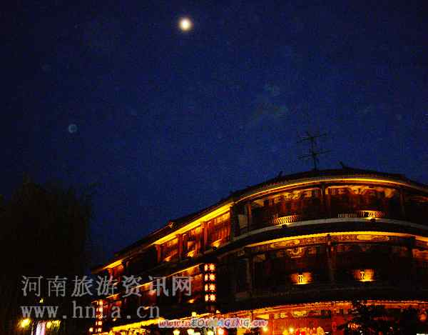 此次,沒(méi)有機(jī)會(huì)依偎在洱海堤岸邊,一邊享受大理的夜風(fēng),一邊欣賞洱海上空那一輪彎月。大理古城內(nèi),視線越過(guò)昏黃的路燈,越過(guò)高高的鼓樓頂部,在現(xiàn)實(shí)的煩囂中默默注視著這輪半月。