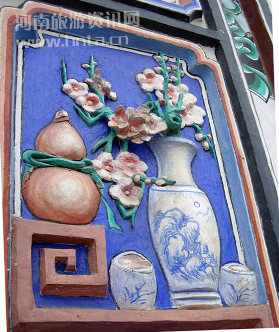 喜洲白族民居特別重視照壁、門窗花枋、山墻、門樓的裝飾。上圖為精美的墻體雕刻裝飾。