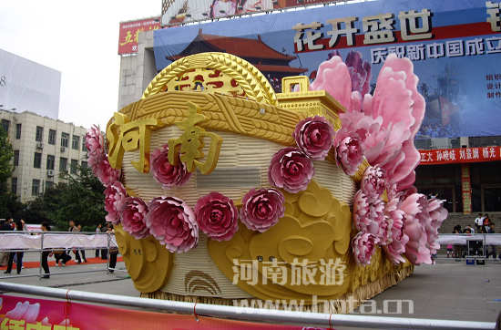 河南花車開始的名字叫“花開盛世,錦繡中原”,后來國家規(guī)定所有的彩車名字都是四個字,最后取名“花開盛世”。