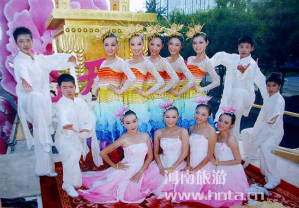 河南彩車上的工作人員中原工學(xué)院教師關(guān)潔介紹,由于河南彩車“花開盛世”飛揚夸張的粉色牡丹花非常搶眼,許多游客紛紛在此留影,彩車上的表演者“牡丹仙子”們,個個如花似玉,非常靚麗,身高都在1米80以上,只要出現(xiàn)在彩車上,參觀的人群就開始向前涌動,擁擠得多次把護欄推到,為保障游客安全和游覽秩序,保衛(wèi)人員只好把“牡丹仙子”們“趕”下車。后來,“牡丹仙子”一露面,保衛(wèi)人員就“吼”她們藏起來,由于觀看和留影的游客太多,實在沒辦法了,工作人員又河南彩車前派了兩排武警戰(zhàn)士維護安全。