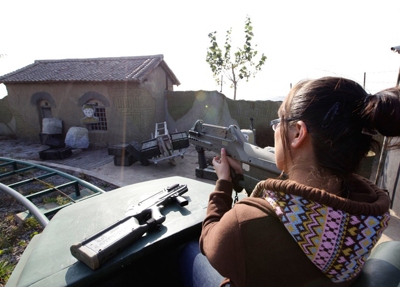 圖為游客坐著游覽車(chē)體驗(yàn)戰(zhàn)斗。