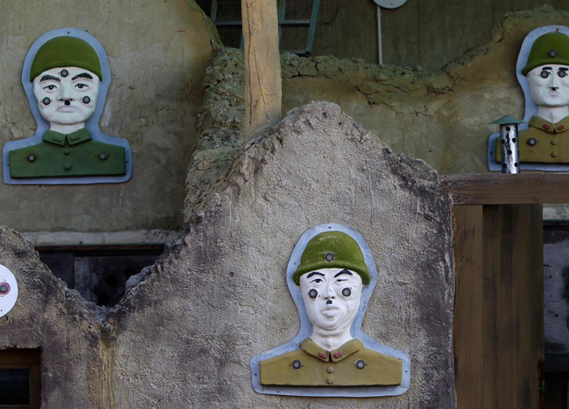 圖為園內(nèi)設(shè)置的帶有“日本兵”頭像的靶子。