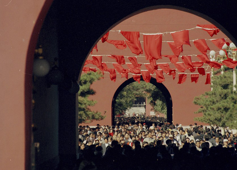 1999年,中國國務(wù)院公布了新的《全國年節(jié)及紀(jì)念日放假辦法》,決定將春節(jié)、“五一"、“十一”的休息時(shí)間與前后的雙休日拼接,從而形成7天的長假,即"黃金周"。第一個(gè)“黃金周”為1999年國慶節(jié)假期,期間全國出游人數(shù)達(dá)2800萬人次。圖為1999年10月1日,北京故宮外的游客。
