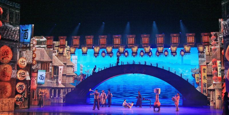 大型多媒體歌舞秀《千回大宋》,是以300年大宋歷史文化為背景,以千年開封歷史人文為主線,重點體現(xiàn)開封的水、花、人、城、市五大元素,全劇以《千年一嘆》為序,讓《禪音》、《市井》、《忠烈》、《清風(fēng)》、《夢回》5篇章呈現(xiàn)宋朝繁華,以《盛世花開》為結(jié)尾等7個篇章構(gòu)成,將舞蹈、武術(shù)、音樂、雜技等藝術(shù)熔于一爐,剛健與柔婉的風(fēng)格相得益彰,環(huán)環(huán)相扣,訴說一幕幕獨有的大宋風(fēng)情。